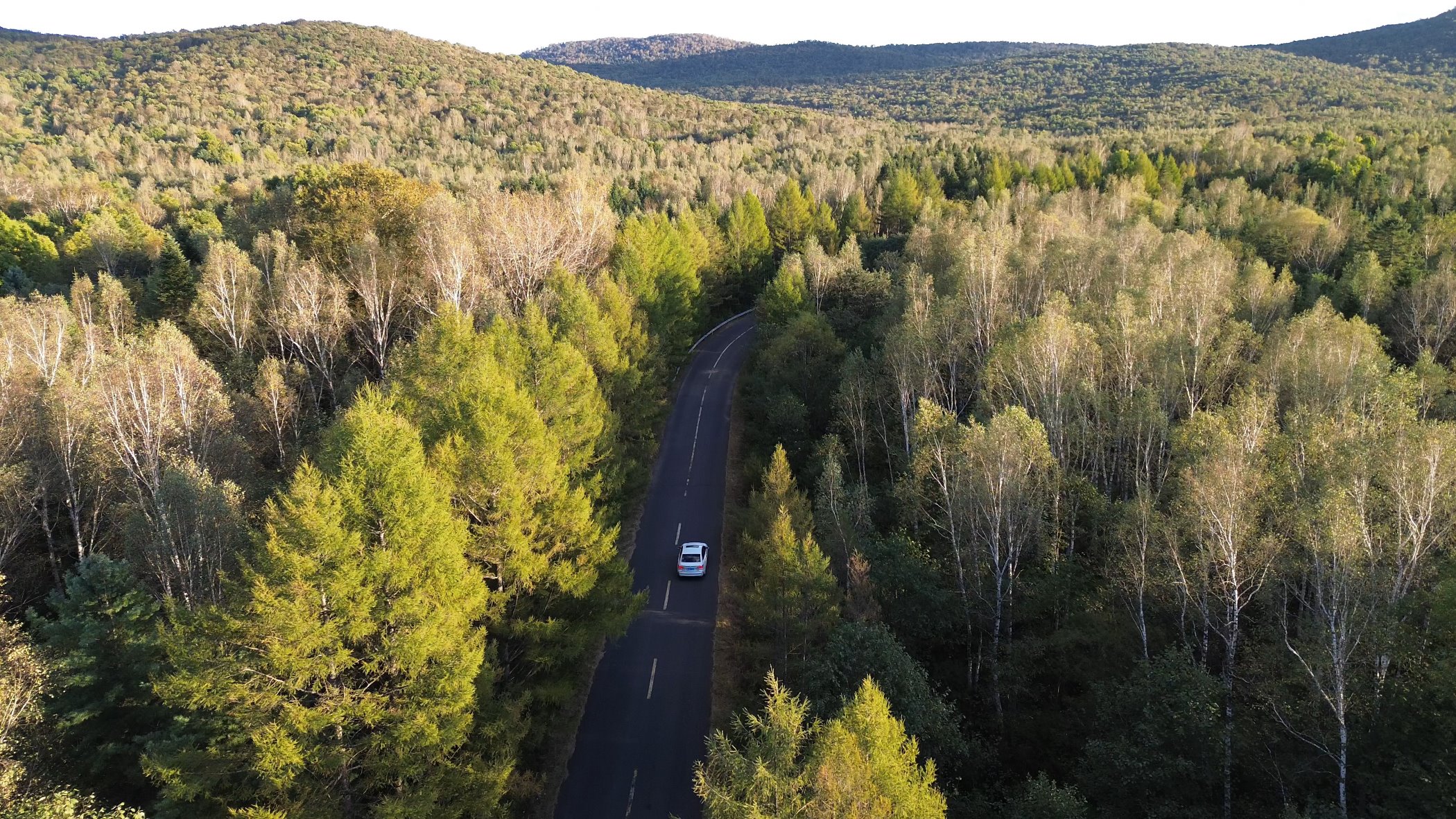 去伊春路上可以去一下乌带公里。我们来的有点早,乌带公路还没有染黄,比较可惜。这条公路开一小半就可以回了